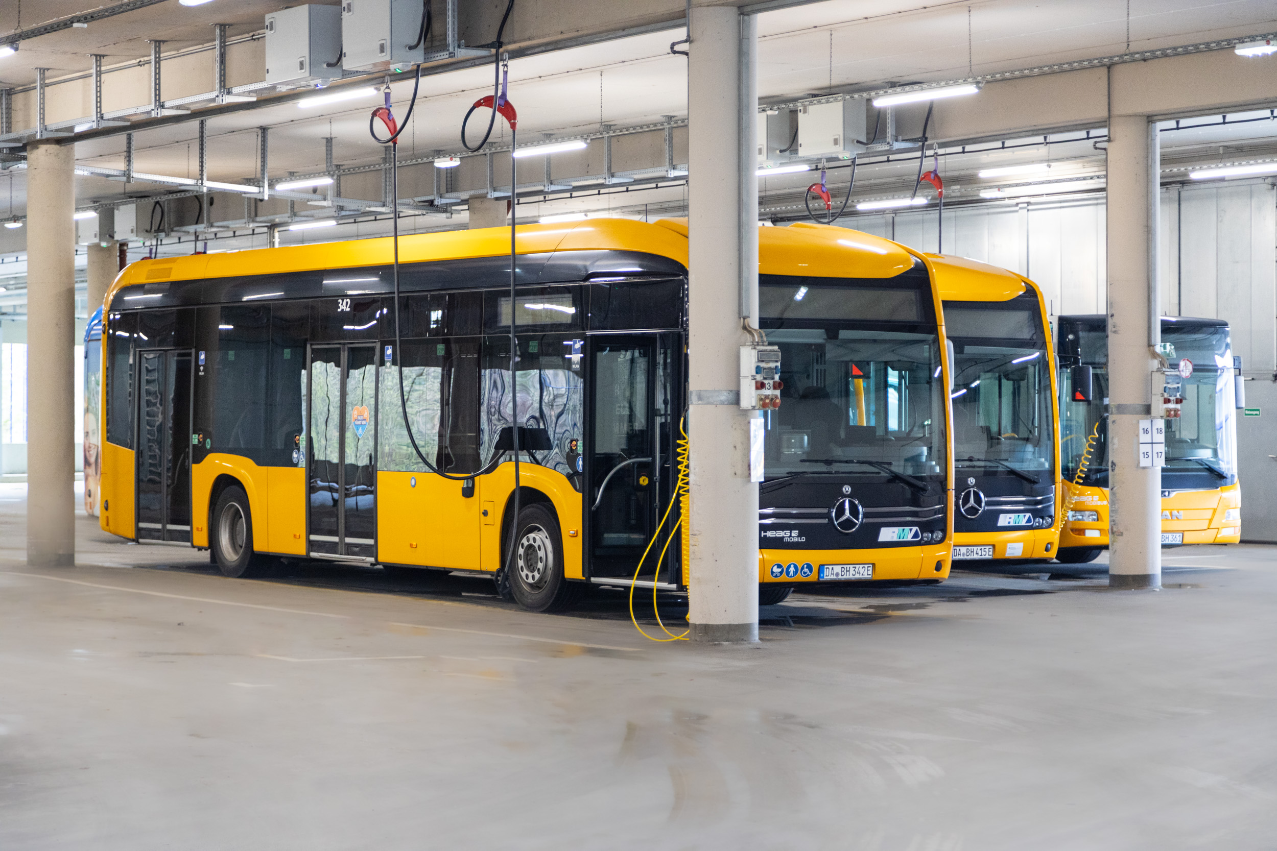 Ladeinfrastruktur für E-Busse auf dem Betriebshof der HEAG mobilo in Darmstadt